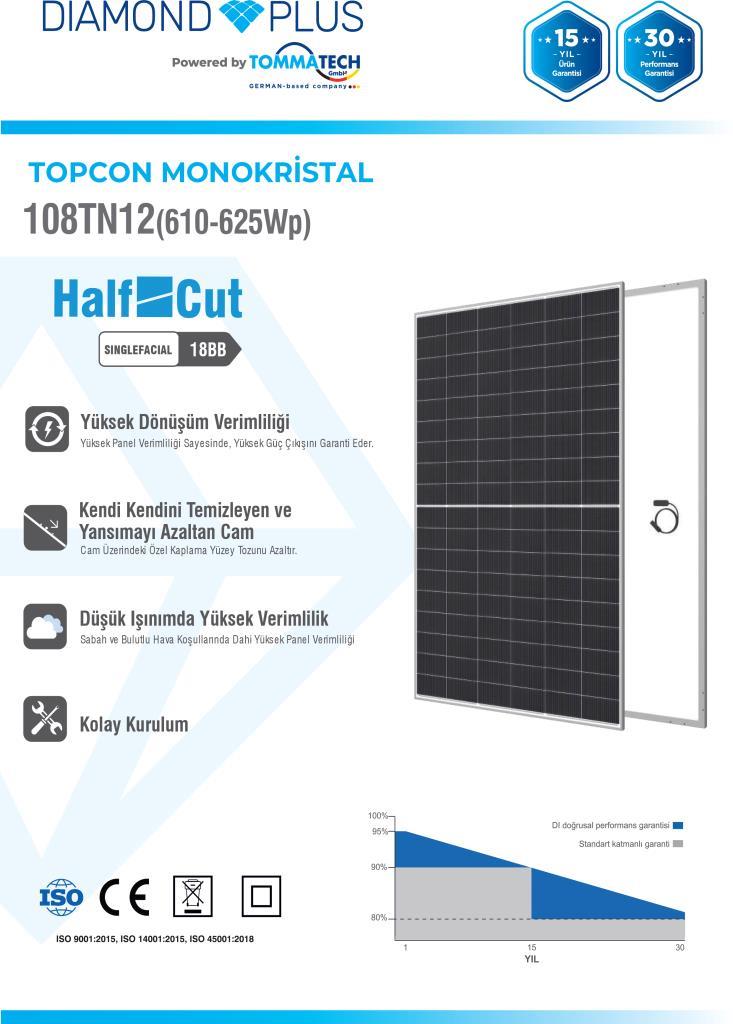 TommaTech 625Wp 108TN M12 TOPCon Diamond Plus Güneş Paneli