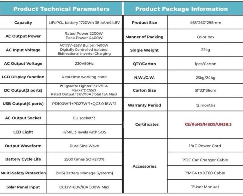 Orbus 2200W taşınabilir güç kaynağı, kamp, karavan, bağ evi veya şehir içi acil durumlar için ideal bir enerji çözümüdür. 2200W çıkış gücü sayesinde telefon, dizüstü bilgisayar, mini buzdolabı, aydınlatma sistemleri ve televizyon gibi birçok cihazı aynı anda çalıştırabilirsiniz. Kompakt tasarımı ve taşınabilir yapısı ile her yere rahatlıkla götürülebilir.