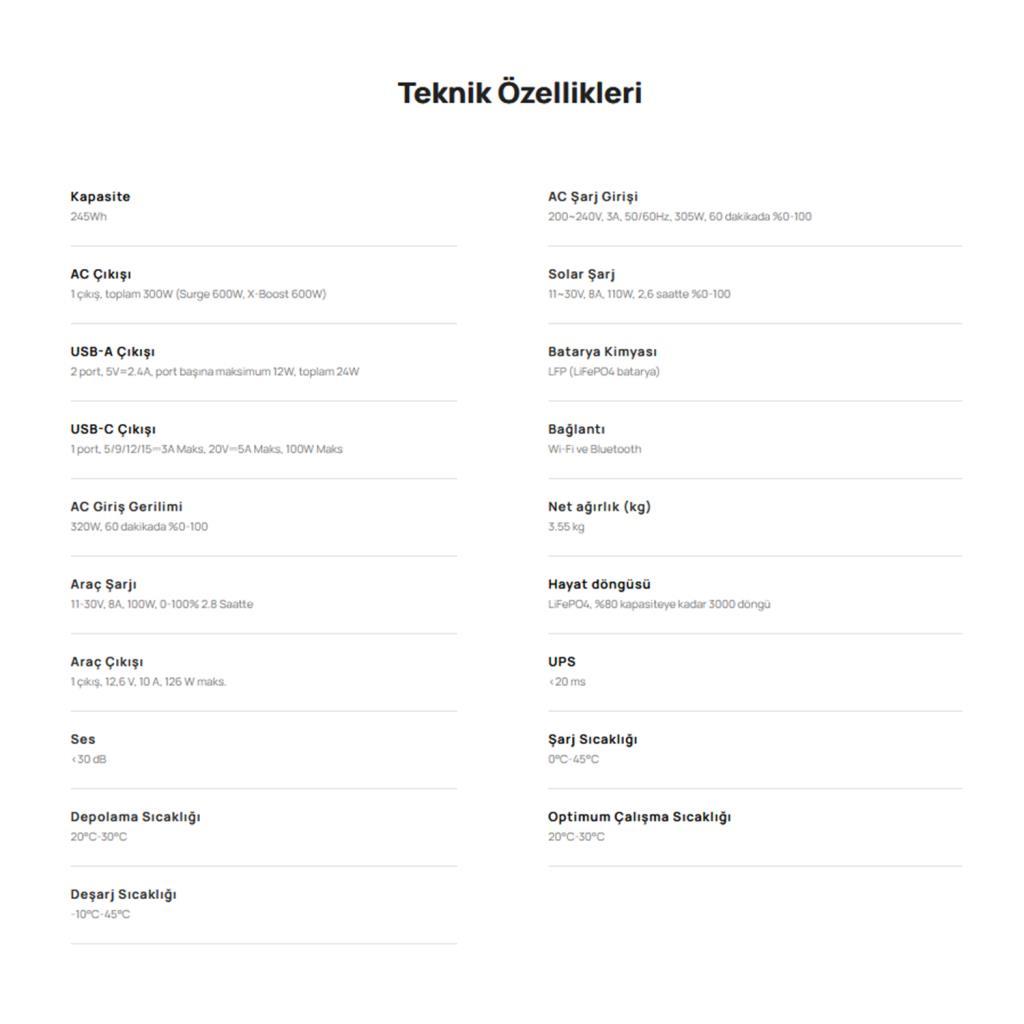• Kapasite: 245 Wh