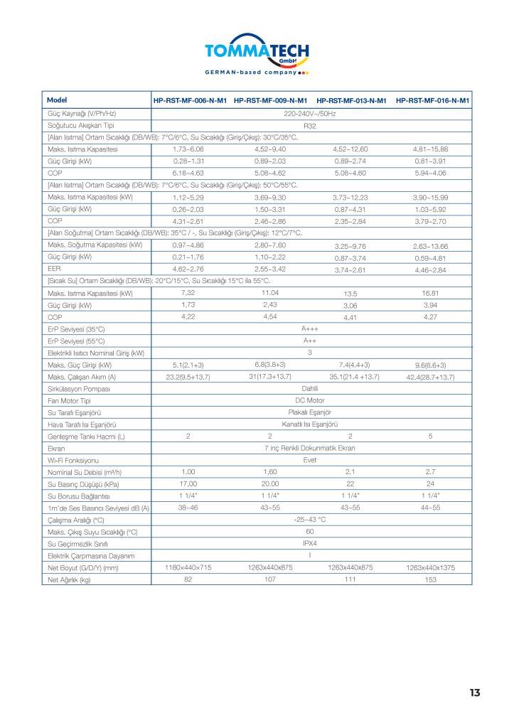 Modern Full DC inverter + EVI teknolojisi, Wi‑Fi akıllı kontrol ve dokunmatik ekran gibi geliştirilmiş özellikleri ile TommaTech 16 kW Titan Serisi Isı Pompası (MonoFaze), enerji verimliliği, kullanıcı konforu ve düşük işletim maliyetini bir arada sunan güçlü bir iklimlendirme çözümüdür.